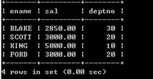 | ename | sal | grade | deptno |