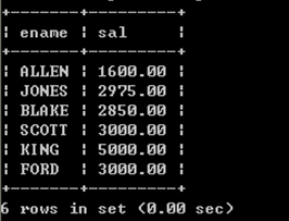 select e.ename,e.sal