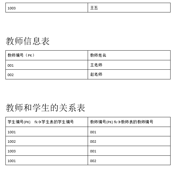 | 学生编号(PK) | 学生姓名 | 教师编号(PK) | 教师姓名 |