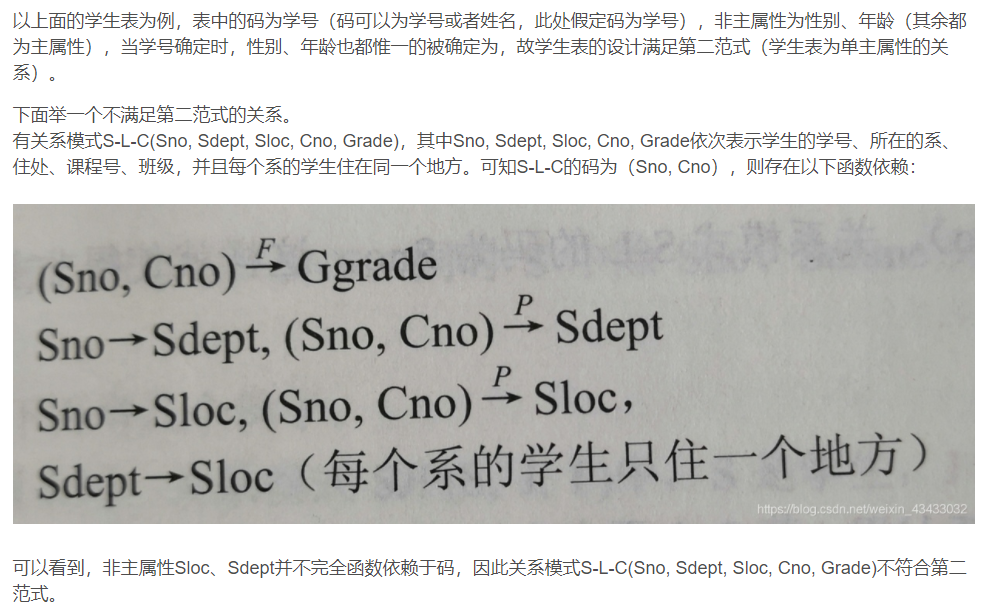 定义: 若某关系R属于第一范式,且每一个非主属性完全函数依赖于任何一个候选码,则关系R属于第二范式。